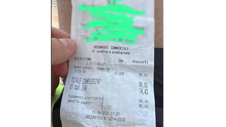 La denuncia arriva attraverso il deputato di Alleanza Verdi e Sinistra, Francesco Emilio Borrelli, che ha condiviso lo scontrino ricevuto da un cittadino. Il cliente, nel suo messaggio, ha spiegato di aver inizialmente compreso che il costo sarebbe stato di 40 euro, ma al momento del pagamento con carta è emerso un importo doppio. A peggiorare la situazione, il mare nei pressi dello stabilimento risultava sporco, secondo quanto riportato dall’utente.