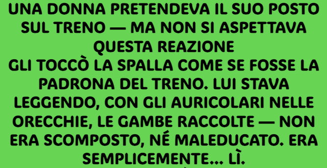 Gli toccò la spalla come se fosse la padrona del treno. Lui stava leggendo, con gli auricolari nelle orecchie, le gambe raccolte — non era scomposto, né maleducato. Era semplicemente… lì.