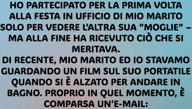 Di recente, mio marito ed io stavamo guardando un film sul suo portatile quando si è alzato per andare in bagno. Proprio in quel momento, è comparsa un’e-mail: