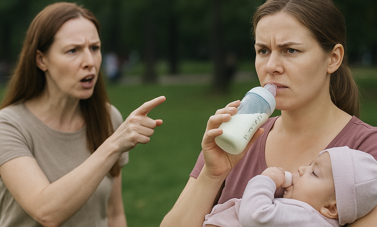 Una mamma viene criticata al parco per l’uso del biberon, ma la sua risposta commuove tutti