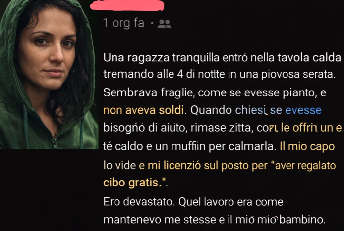 Non chiese chi fosse, né cosa stesse succedendo. Vide solo il cibo sul bancone.