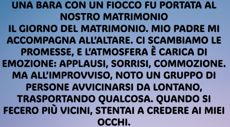 La posarono proprio davanti all’altare e se ne andarono, senza dire una parola. L’intera sala piombò in un silenzio glaciale. Uno degli amici di mio marito si fece avanti e, con lentezza, sollevò il coperchio.