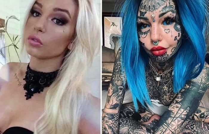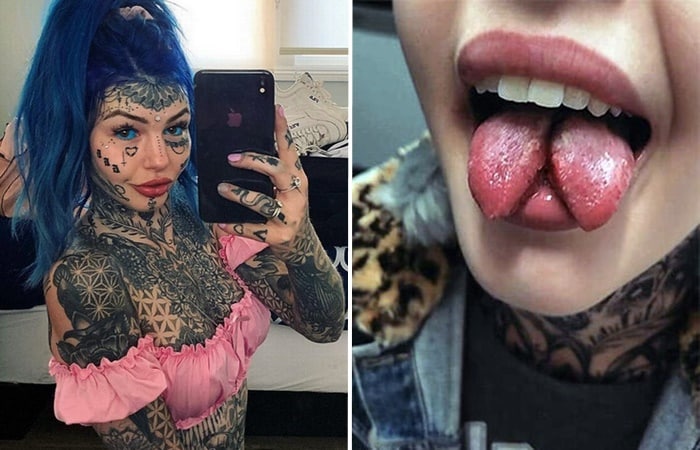 Secondo Amber, questo percorso l’ha salvata dalla depressione e dai pensieri oscuri. Tuttavia, il suo desiderio di assumere un aspetto quasi ultraterreno ha avuto un prezzo elevato: ha rischiato di perdere la vista. L’iniezione di inchiostro blu negli occhi l’ha infatti resa cieca per tre settimane.