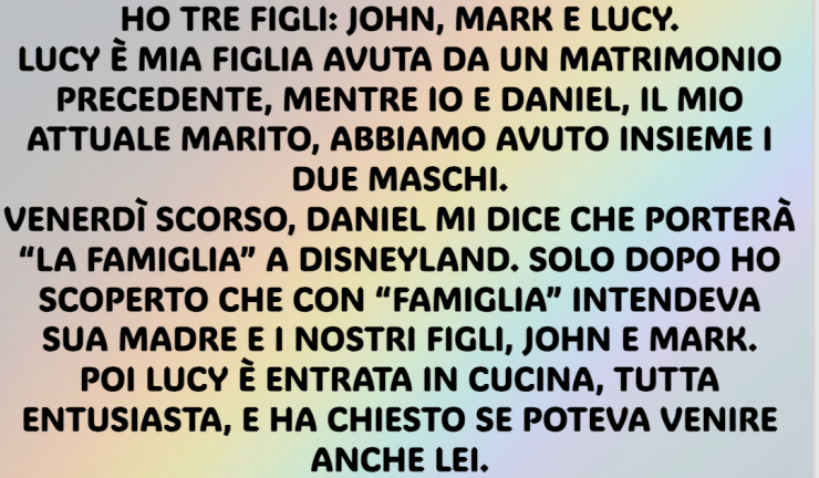 Ha insistito dicendo che voleva tenere unita la famiglia, che amava me e i ragazzi. Gli ho chiesto se poteva amare Lucy davvero, come una figlia. Ha distolto lo sguardo. Il suo silenzio mi ha detto tutto.