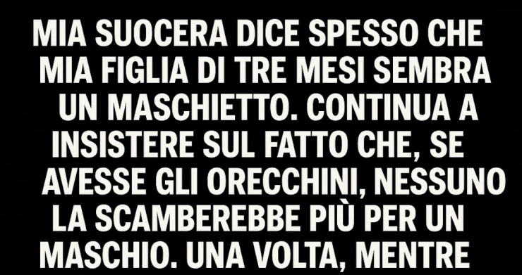 Mia suocera dice spesso che mia figlia di tre mesi sembra un maschietto. Continua a insistere sul fatto che, se avesse gli orecchini, nessuno la scambierebbe più per un maschio. Una volta, mentre stava badando a mia figlia, sono tornata a casa prima del previsto. Si è avvicinata a me tenendo la bambina stretta al petto e, con un sorrisetto, ha detto: «Ora sembrerà finalmente una signorina».