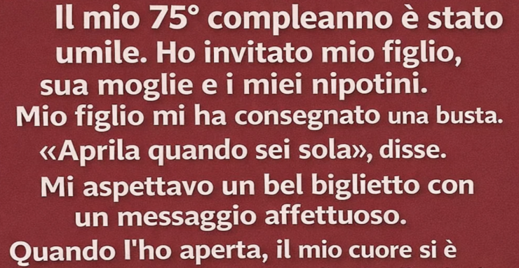 Quest’anno, per il mio compleanno, li ho invitati a una cena semplice. Niente di speciale — solo un pasto fatto in casa e un po’ di compagnia. Prima di andarsene, mio figlio mi ha dato una busta e ha detto: