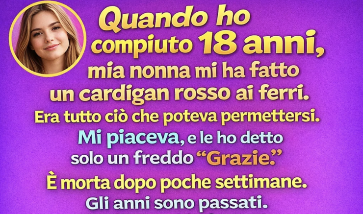 Quando compii diciotto anni, mia nonna mi porse un cardigan rosso, fatto a maglia.