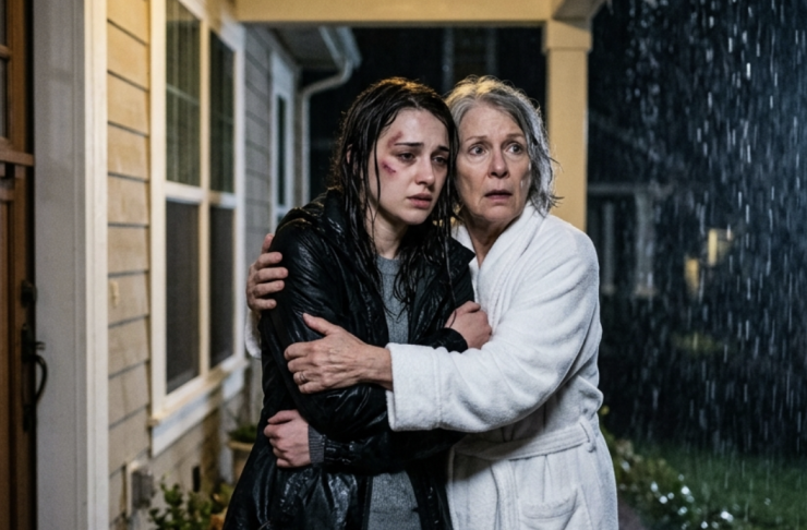 Corsi giù per il corridoio a piedi nudi, aprii la serratura di scatto e trovai Sarah accasciata contro la ringhiera del portico, come se qualcuno l’avesse lasciata lì. I suoi capelli biondi erano scuriti dalla pioggia, completamente fradici. Un lato del labbro era spaccato e il braccio destro era stretto contro le costole.