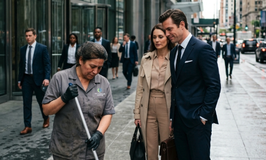 Nessuno nota la donna che spazza le foglie o lava i corridoi di servizio. Nessuno abbassa la voce per colpa sua. Parlano intorno a lei, oltre lei, attraverso di lei. I dirigenti si lamentano in vivavoce accanto a lei. I broker flirtano, imprecano, gonfiano i numeri e rivelano cosa pensano veramente dei fornitori e del personale. Le guardie di sicurezza parlano più apertamente vicino a qualcuno che classificano come invisibile. I receptionist alzano gli occhi al cielo. I facility manager dicono la verità quando pensano che nessuno con autorità stia ascoltando.