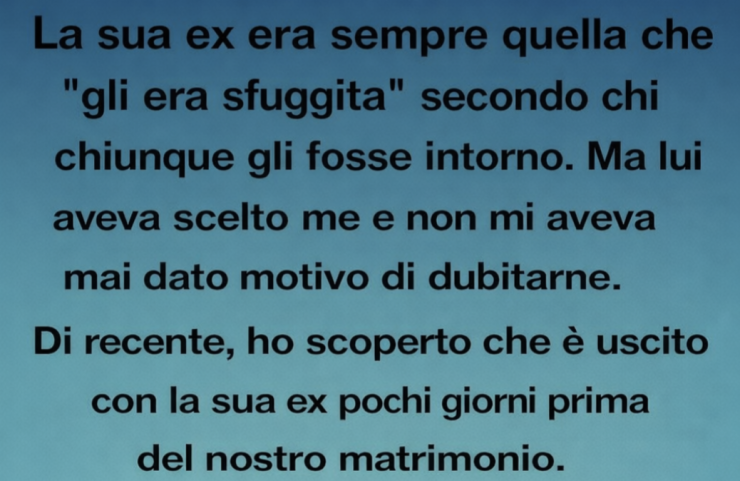 La sua ex è sempre stata “quella giusta che è scappata”, almeno secondo tutti quelli che gli stavano intorno. Ma lui aveva scelto me e non mi aveva mai dato motivo di dubitare di lui. Fino a quando, di recente, ho scoperto la verità.