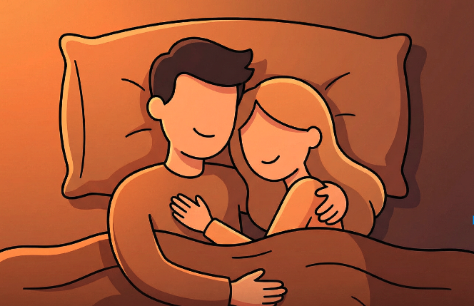 L’immagine di una coppia che riposa serenamente insieme racchiude perfettamente questa idea:l’amore come comfort, sicurezza e intimità emotiva.