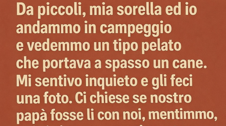Cercammo di non pensarci e proseguimmo verso il lago, tentando di scrollarci di dosso quella sensazione di disagio. Ma, appena girato un sentiero, eccolo di nuovo: era lì, vicino all’acqua, fingendo di lanciare dei bastoncini al cane. Quando ci vide, iniziò a farci domande troppo personali: