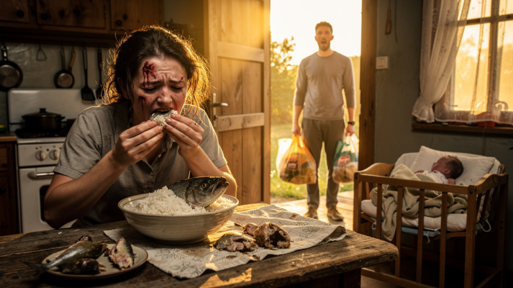 Cominciò a piangere, in silenzio, con le lacrime che cadevano direttamente sul riso avariato, mescolandosi con qualcosa di più profondo.