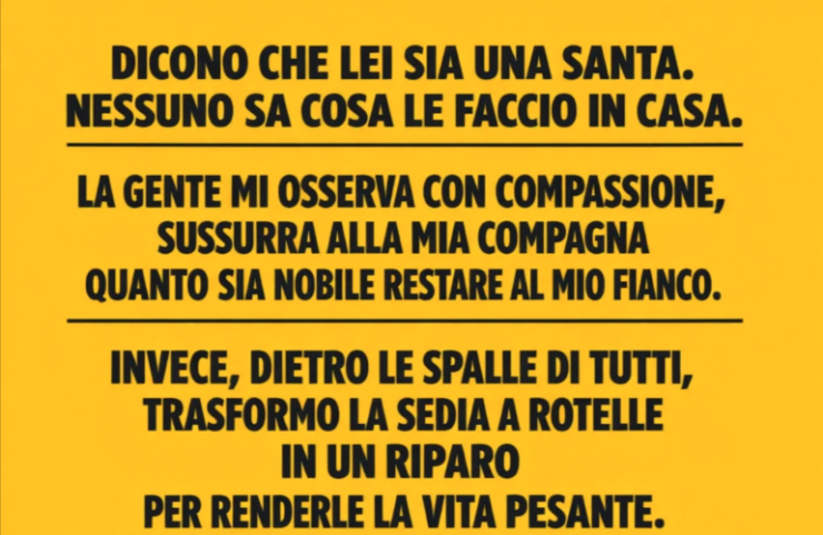 La gente mi osserva con compassione, sussurra alla mia compagna quanto sia nobile restare al mio fianco.