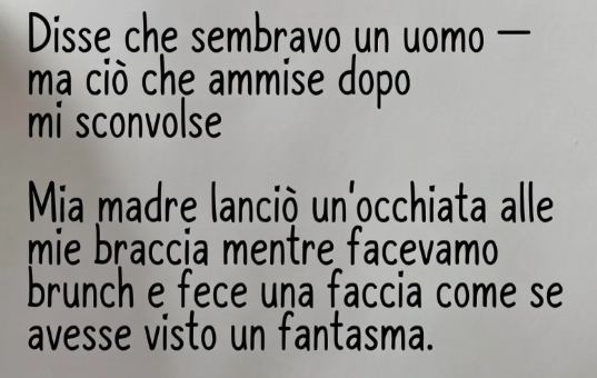Presi un respiro profondo e dissi: «Mamma dice di averti sentito dire che sembro un uomo».