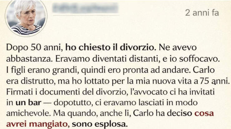 Dopo oltre cinquant’anni di matrimonio, io — una donna di settantacinque anni — volevo mettere fine a tutto.