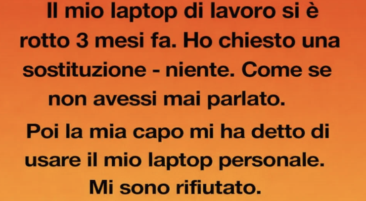 Il mio portatile di lavoro si è rotto 3 mesi fa. Ho chiesto una sostituzione – niente. Come se non avessi mai parlato. Poi, la mia capa mi ha detto di usare il mio portatile personale. Ho rifiutato. Lei ha riso in faccia e ha detto: “Dovresti essere grata che ti abbiamo persino assunto.” Sono uscita dalla stanza. Poche ore dopo, ha perso la testa quando il direttore regionale ha annunciato che avrebbe visitato l’ufficio la mattina successiva.