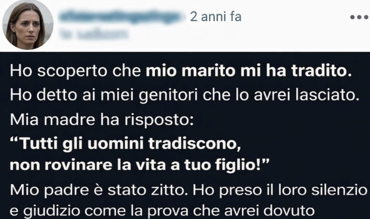 “Tutti gli uomini tradiscono. Non rovinare la vita di tuo figlio per qualcosa di piccolo.”