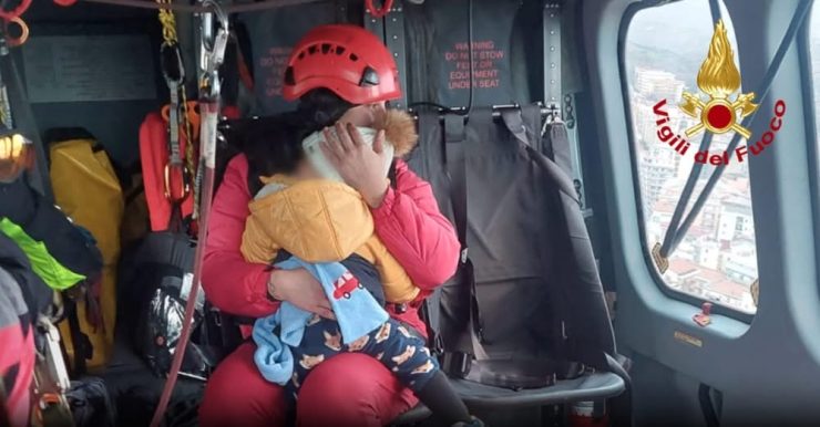 Durante un intervento di salvataggio, gli operatori dei Vigili del Fuoco si sono calati dall’elicottero Drago 165 per raggiungere una madre e la sua bambina, rimaste isolate a causa dell’innalzamento del livello dell’acqua. La donna, bloccata sul tetto della propria abitazione, è stata agganciata con un verricello e sollevata insieme alla sua piccola, portando a termine un’operazione delicata ma fondamentale.