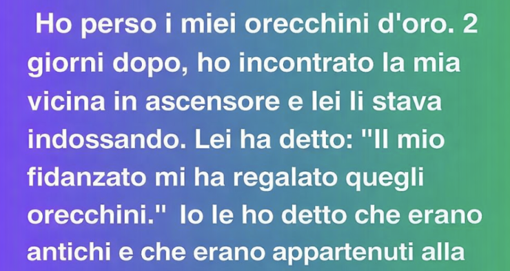Avevo perso i miei orecchini d’oro. Due giorni dopo, ho incontrato la mia vicina in ascensore… e li indossava.