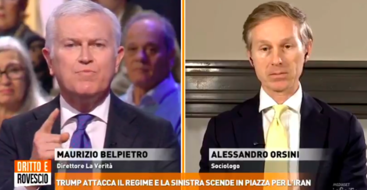 Acceso dibattito a Dritto e Rovescio tra Maurizio Belpietro e Alessandro Orsini a seguito dell’affermazione del professore secondo cui il defunto leader iraniano, Ali Khamenei, risulterebbe “moralmente superiore” a figure politiche occidentali quali Giorgia Meloni, Donald Trump e Benjamin Netanyahu, nonché alle democrazie occidentali nel loro complesso.