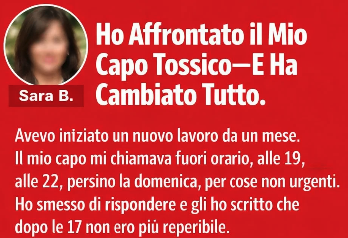 Avevo iniziato un nuovo lavoro da un mese. Il mio capo mi chiamava fuori orario, alle 19, alle 22, persino la domenica, per cose non urgenti. Ho smesso di rispondere e gli ho scritto che dopo le 17 non ero più reperibile. Il giorno dopo ha mandato una comunicazione interna, e tutti si sono voltati verso di me: diceva che i dipendenti con contratto a stipendio fisso dovevano essere “raggiungibili secondo necessità, indipendentemente dall’orario.”