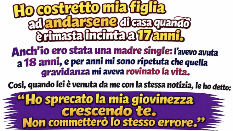 L’ho mandata via quando mi ha detto di essere incinta a diciassette anni. Anch’io ero stata una madre single, avevo appena diciotto anni quando era nata lei, e per anni mi sono raccontata che la sua nascita mi aveva intrappolata, limitata, rubato quel poco di giovinezza che mi restava. Invece di guarire quelle ferite, le ho portate dentro come pietre in tasca: pesanti, amare.