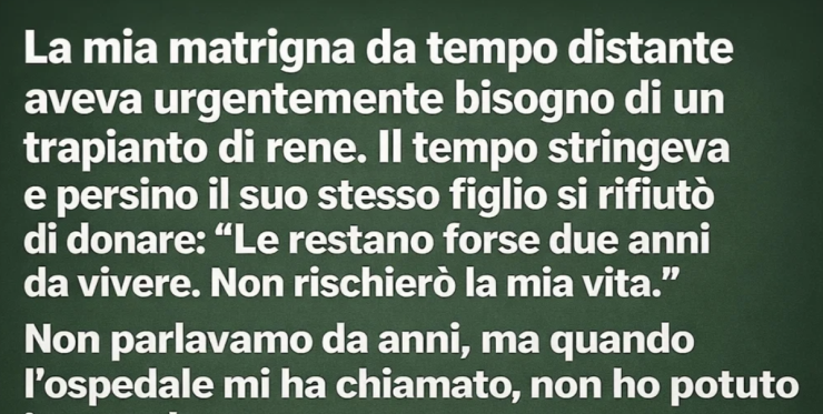 Prima che potessi rispondere, l’infermiera le spiegò con dolcezza che ero la sua figliastra e che avevo donato io il rene.