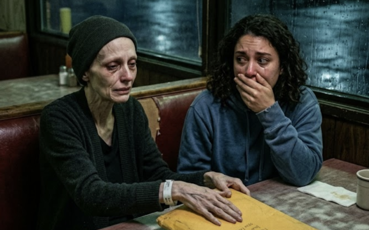 Il diner era un fossile anni ’50 ai margini di Portland, neon rossi che sfarfallavano sul parcheggio bagnato dalla pioggia incessante dell’Oregon. L’aria dentro odorava di grasso rancido, caffè bruciato e disperazione quieta, con il ronzio costante di un ventilatore rotto che mescolava il vapore delle fritture. Entrai scrollandomi la pioggia dal cappotto, stivali che scricchiolavano sul linoleum appiccicoso, e la vidi subito: Maya in un booth isolato, curva su se stessa come un’ombra fragile. I suoi capelli un tempo folti e lucenti ora pendevano opachi e incollati alla fronte sudata, il viso scavato da occhiaie viola profonde, le mani ossute che riducevano un tovagliolo di carta a brandelli umidi. Indossava un maglione largo grigio, che le scivolava dalle spalle esili, e non alzò lo sguardo quando mi sedetti di fronte, il vinile freddo che scricchiolò sotto il mio peso.