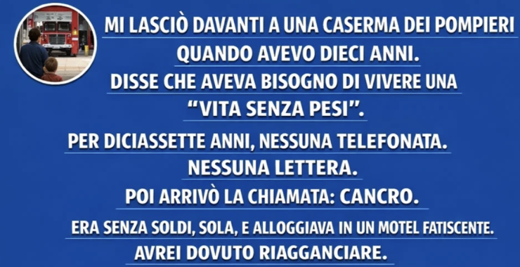 Lasciò davanti a una caserma dei pompieri quando avevo dieci anni. Disse che aveva bisogno di vivere una “vita senza pesi”. Per diciassette anni, nessuna telefonata. Nessuna lettera. Poi arrivò la chiamata: cancro. Era senza soldi, sola, e alloggiava in un motel fatiscente. Avrei dovuto riagganciare. Invece guidai per quattro ore e la riportai a casa.