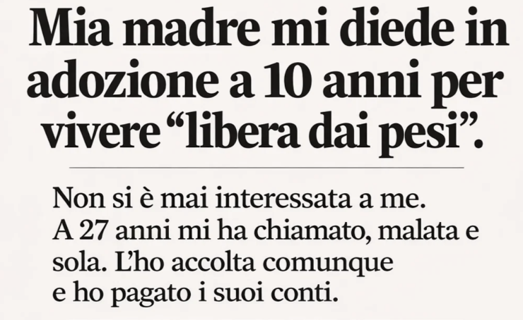 Mi lasciò davanti a una caserma dei pompieri quando avevo dieci anni. Disse che aveva bisogno di vivere una “vita senza pesi”. Per diciassette anni, nemmeno una chiamata. Nemmeno una lettera. Poi arrivò la telefonata. Cancro. Era al verde, sola, e viveva in un motel economico. Avrei dovuto riattaccare. Invece guidai per quattro ore e la portai a casa.