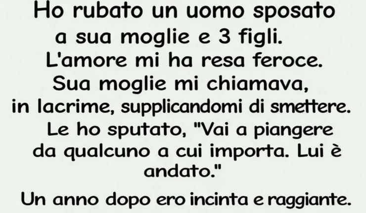 Ho sottratto un uomo a sua moglie e ai suoi tre figli. Ancora oggi, pronunciare quella frase mi lascia un sapore amaro in bocca, ma è la verità. All’epoca, mascheravo le mie scelte con la parola “amore”, usandola come se fosse un’armatura. Mi raccontavo che i sentimenti accadono, che il cuore non segue regole, che il suo matrimonio era già finito. Ogni scusa sembrava plausibile, purché mi proteggesse dal senso di colpa.