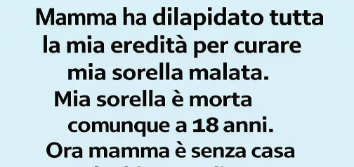 Ho respinto mia madre senza casa dopo che ha speso la mia eredità per mia sorella malata