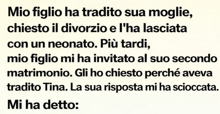 Piano piano, quasi come se non fosse nulla, Tina ha iniziato a parlare dell’infedeltà di mio figlio durante le conversazioni. All’inizio pensavo che stesse scherzando o fraintendendo qualcosa. Ma più ne parlava, più era chiaro: mio figlio l’aveva tradita. Non una sola volta, ma diverse. E lei aveva le prove.