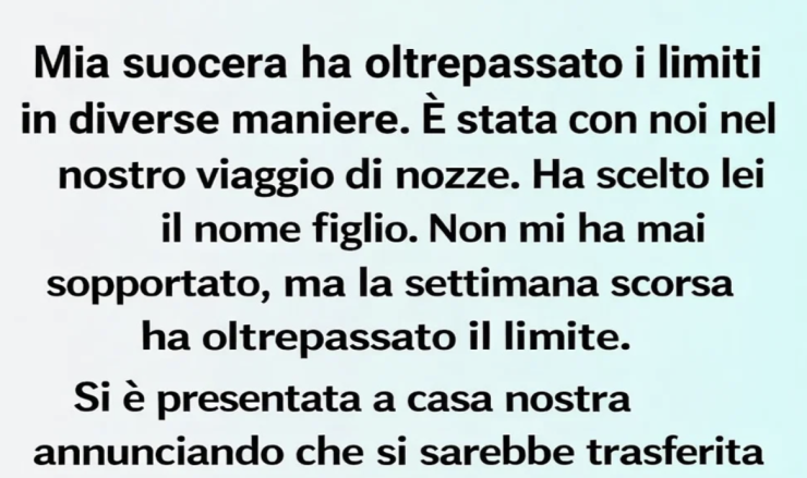 Senza alcun preavviso si è presentata alla nostra porta con una valigia in mano e ha annunciato — come se fosse la cosa più normale del mondo — che si sarebbe trasferita da noi. Non ha chiesto. Non ha proposto. Ha deciso. Mi ha guardata negli occhi dicendo che era “troppo sola” a casa sua, che era “naturale” per una madre vivere con il figlio e che avrebbe “aiutato con il bambino”. Ha persino aggiunto che l’affitto le era aumentato e che “meritava” di stare con la famiglia invece di sprecare soldi.