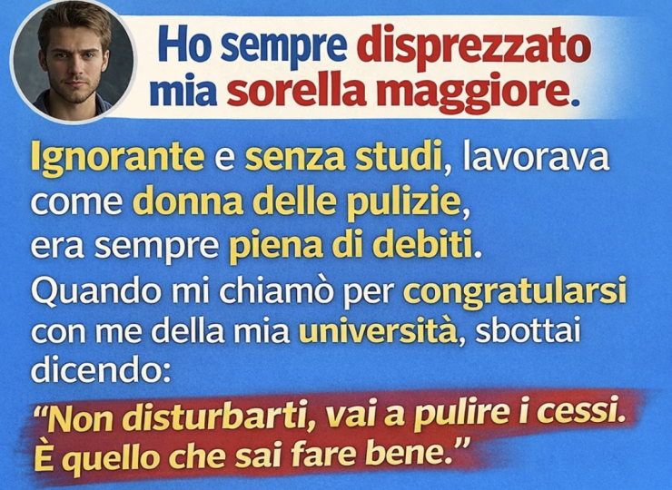 Fin dall’inizio, tutti dicevano che ero destinata a qualcosa di più grande — l’università, un lavoro rispettabile, una vita piena di libri e uffici, non di disinfettanti e sacchi della spazzatura.
