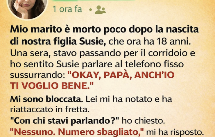 Era una sera qualunque. I piatti erano già lavati. La televisione mormorava in sottofondo. Passando nel corridoio, sentii la voce di Susie—bassa, attenta—provenire dal vecchio telefono fisso che quasi non usavamo più.