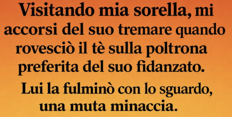 Quando andai a trovare mia sorella, notai che tremava dopo aver rovesciato del tè sulla poltrona preferita del suo ragazzo. Lui la fissò con uno sguardo carico di minaccia silenziosa. L’aria si fece densa quando uscì di casa. La incalzai per sapere la verità e lei sussurrò una confessione così sconvolgente che capii subito che dovevamo pianificare una fuga prima che tornasse.