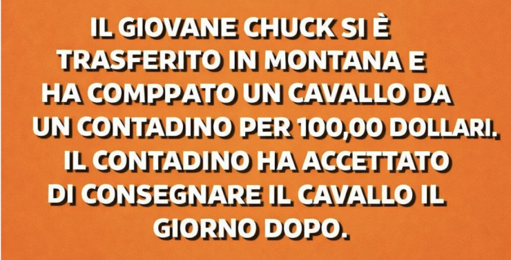 Un mese dopo, il contadino incontrò di nuovo Chuck e gli chiese: