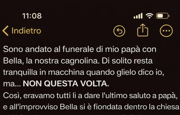 Sono sceso dall’auto e mi sono fermato davanti alla chiesa, sapendo di non essere pronto a dire addio a mio padre. Non possiamo nemmeno dargli un funerale degno, pensavo amaro. In quel momento, l’abbaiare deciso di Bella mi riportò alla realtà.