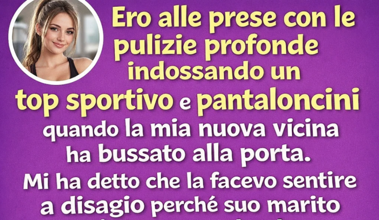 Stavo facendo le pulizie di fondo in reggiseno sportivo e pantaloncini quando la mia nuova vicina bussò alla porta.