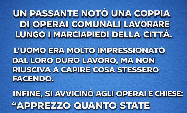Un passante notò due operai comunali che lavoravano lungo il marciapiede della città.
