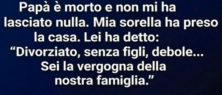 “Divorziata. Senza figli. Troppo sensibile,” disse freddamente. “Sei l’imbarazzo di questa famiglia.”
