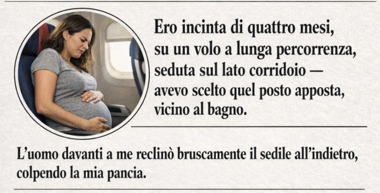Ero incinta di quattro mesi, su un volo intercontinentale. Avevo prenotato un posto lato corridoio, vicino al bagno — per sicurezza e comodità.