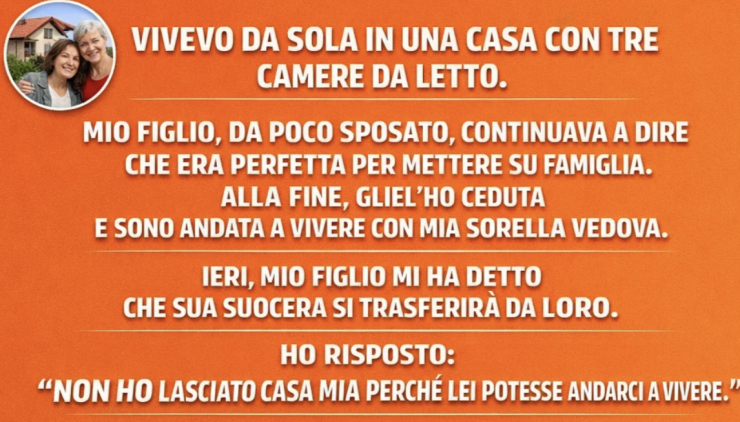 Mio figlio, da poco sposato, continuava a dire che era perfetta per mettere su famiglia. Alla fine, gliel’ho ceduta e sono andata a vivere con mia sorella vedova.