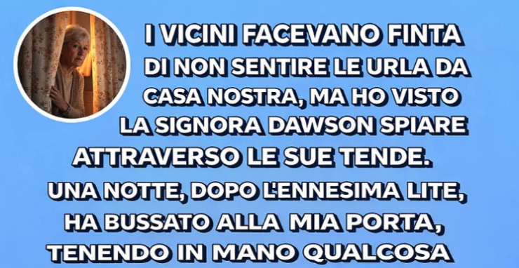 I vicini facevano finta di non sentire le urla provenire dal nostro appartamento, ma avevo visto la signora Dawson sbirciare tra le tende. Una sera, dopo l’ennesima terribile discussione, bussò alla mia porta, tenendo qualcosa avvolto in una vecchia coperta patchwork. Disse piano: “Non potevo restare a guardare senza fare nulla. Tieni, prendi questo…”