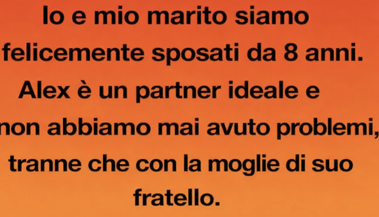 Io e mio marito siamo stati felici per otto anni. Alex è un compagno ideale e, tra noi, non ci sono mai stati veri problemi. L’unica eccezione è sempre stata la moglie di suo fratello.