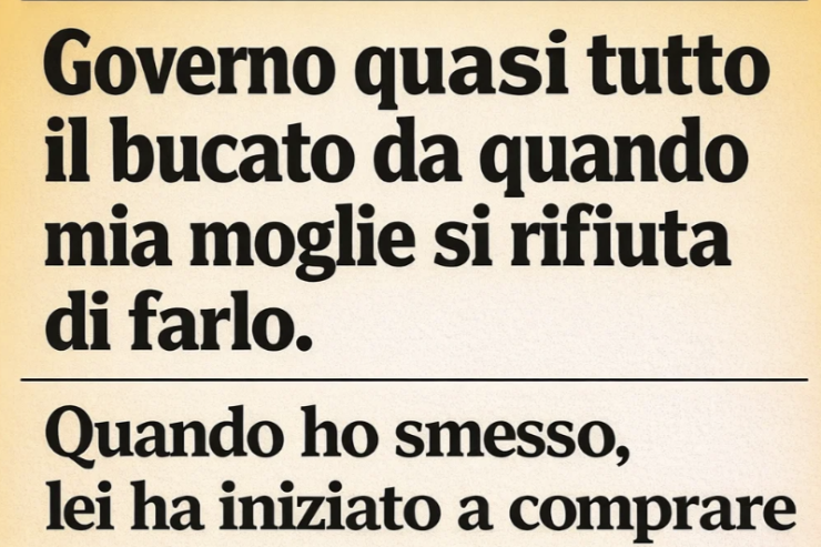 Mi occupo quasi sempre io del bucato, visto che mia moglie si rifiuta di farlo. Quando ho smesso, ha iniziato semplicemente a comprare vestiti economici invece di lavare quelli sporchi. È stato frustrante. Così ho deciso di lasciar correre e vedere fin dove sarebbe arrivata.