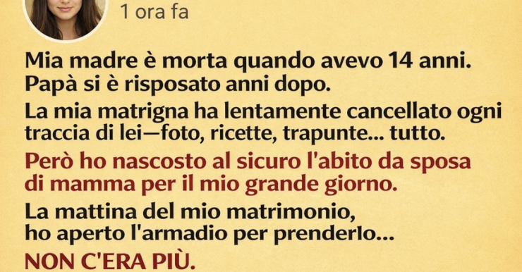 Da allora, la casa cambiò. Le foto di mamma tornarono. I suoi libri, le sue ricette, il suo profumo. E anche un po’ di pace.