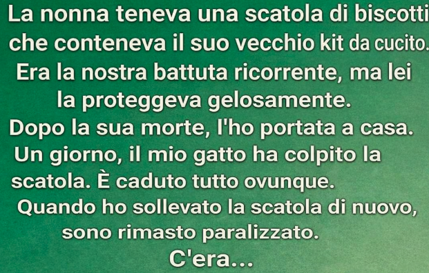 Lei sorrideva, ma non rideva mai. Rimetteva semplicemente la scatola al suo posto, con cura, con intenzione. Anche da bambina intuivo che quella latta pesasse più di quanto suggerisse il suo contenuto. Per lei non era un contenitore di cianfrusaglie. Era qualcosa da proteggere.